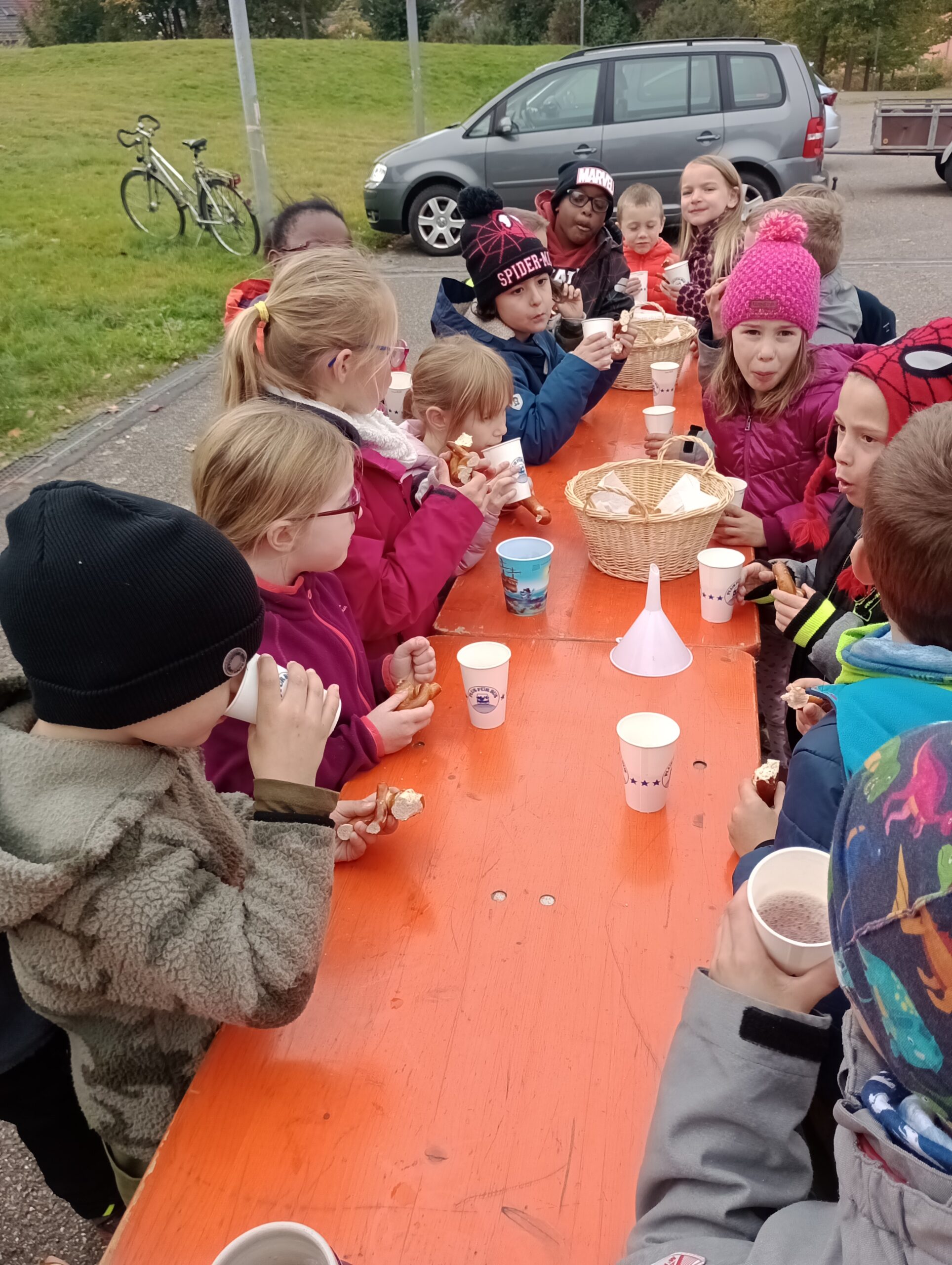 Am Dienstag, den 17.10. stampften die großen Eisbärenkinder der ersten Klasse der Hans-Thoma-Schule über den Schulhof zum Skaterplatz wo uns die Mitglieder des Obst- und Gartenbauvereins bereits erwarteten.