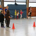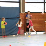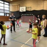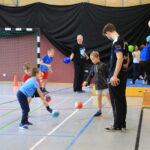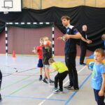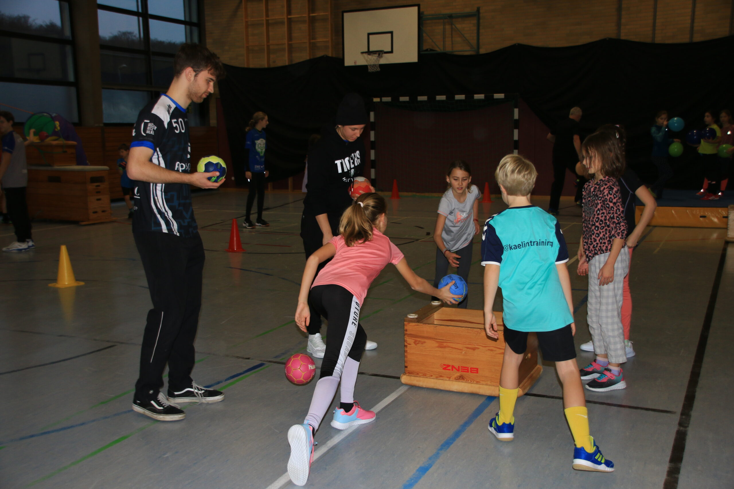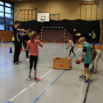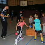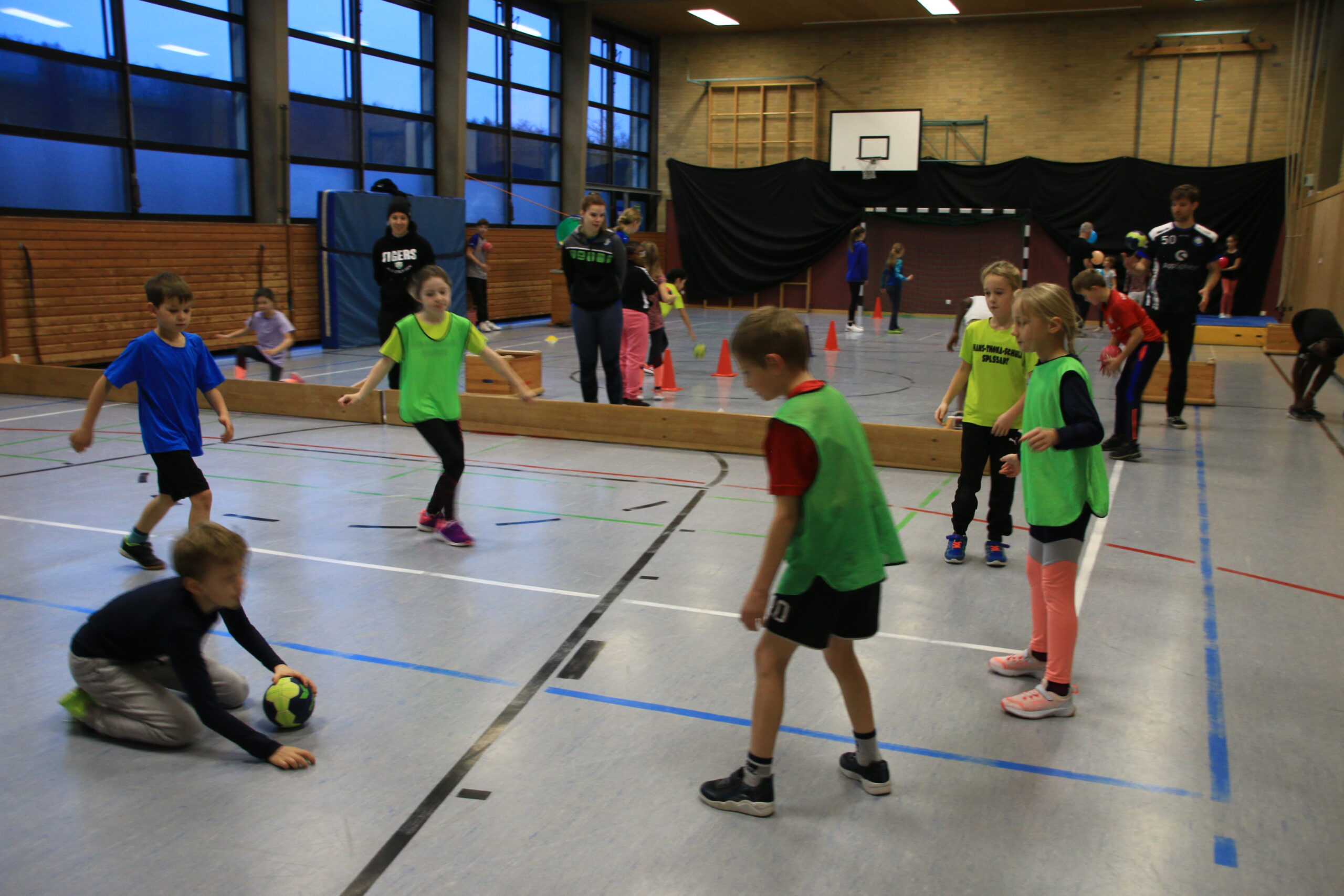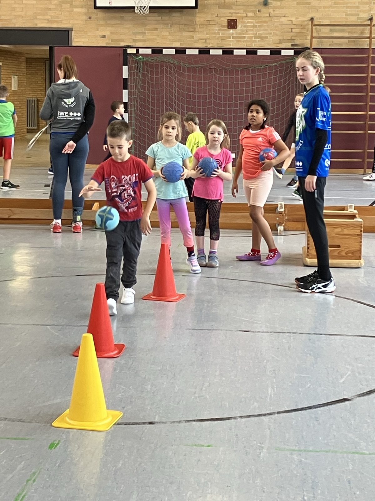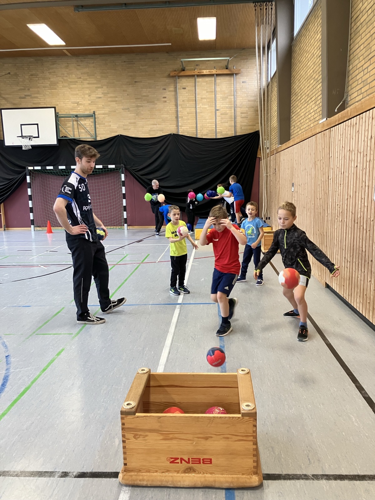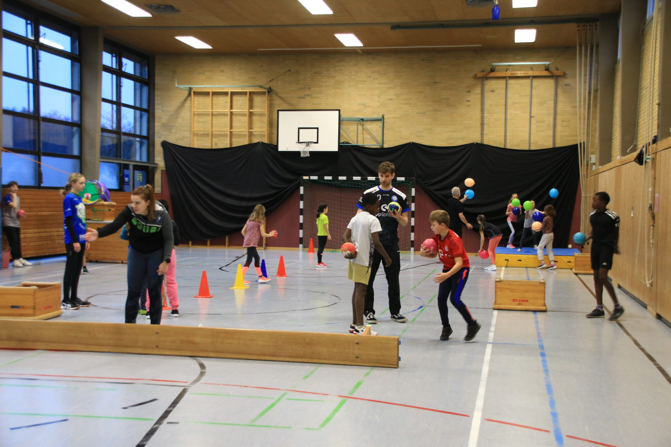 10 Spieler und Spielerinnen der HSG Bruchhausen waren gekommen, um die Grundschüler für die Sportart Handball zu begeistern. Unter der organisatorischen Leitung von Sandra Huth hatten sie verschiedene Stationen aufgebaut, an denen sich die Kinder  ausprobieren durften.