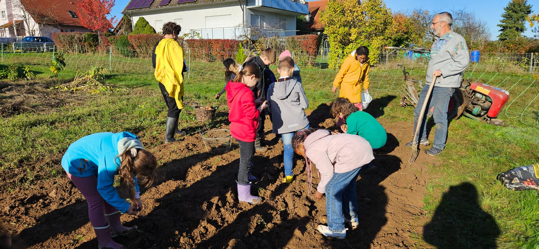 Auch wenn wir uns bereits auf dem Kartoffelacker bei Familie Weber, Frau Anderer und Herrn Kraft mit unserem fetzigen Kartoffelboogie für ihr Engagement und ihre Gastfreundschaft bedankt haben, möchte ich hier nochmals offiziell ein großes Dankeschön für ihre ehrenamtliche Arbeit aussprechen. Ohne den Obst- und Gartenbauverein wäre dieses tolle Projekt so nicht möglich gewesen.