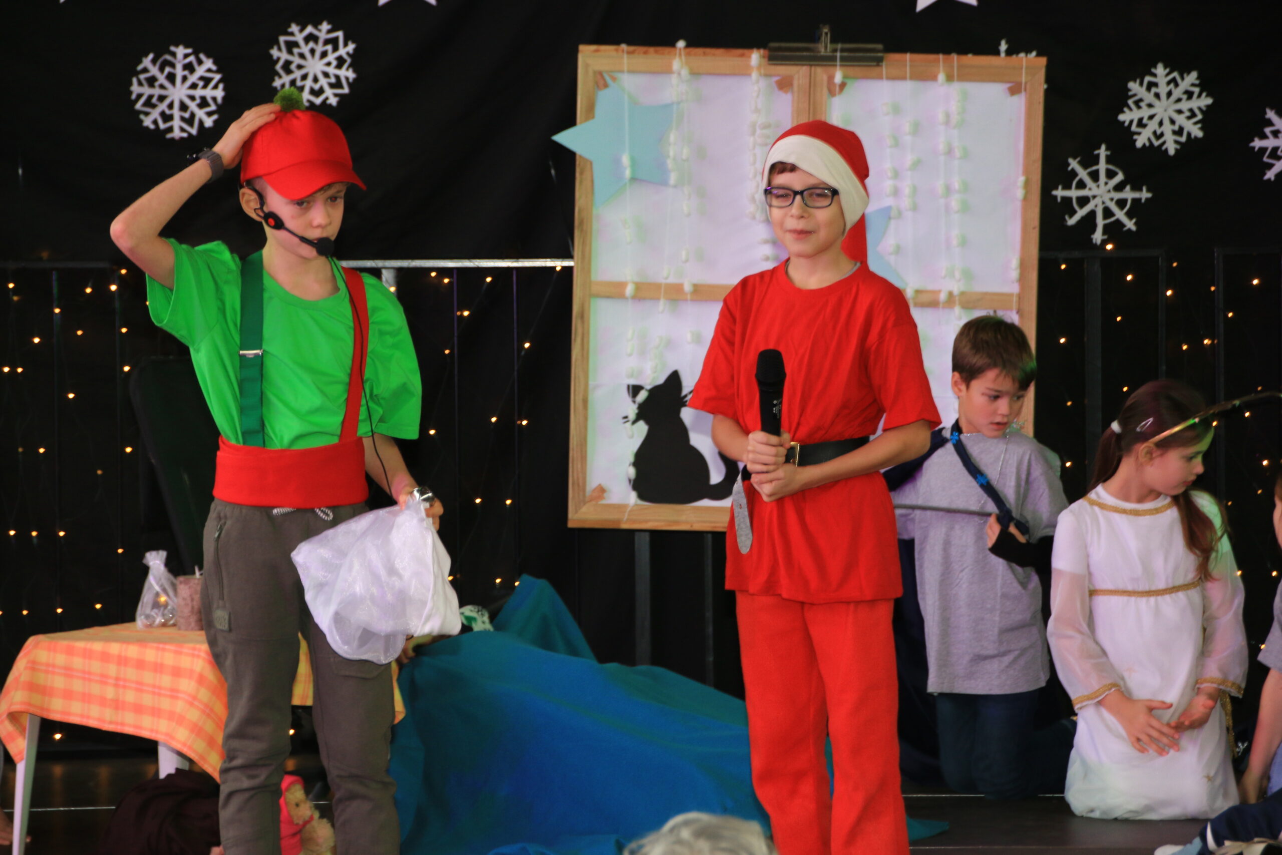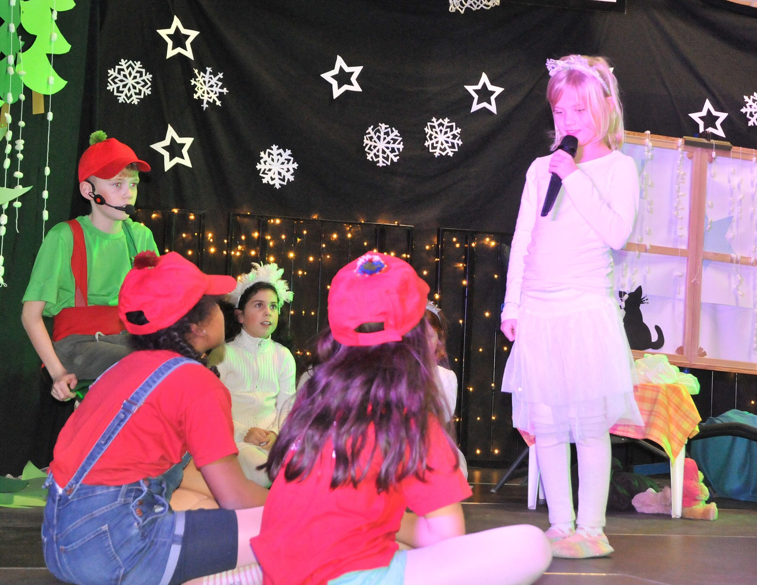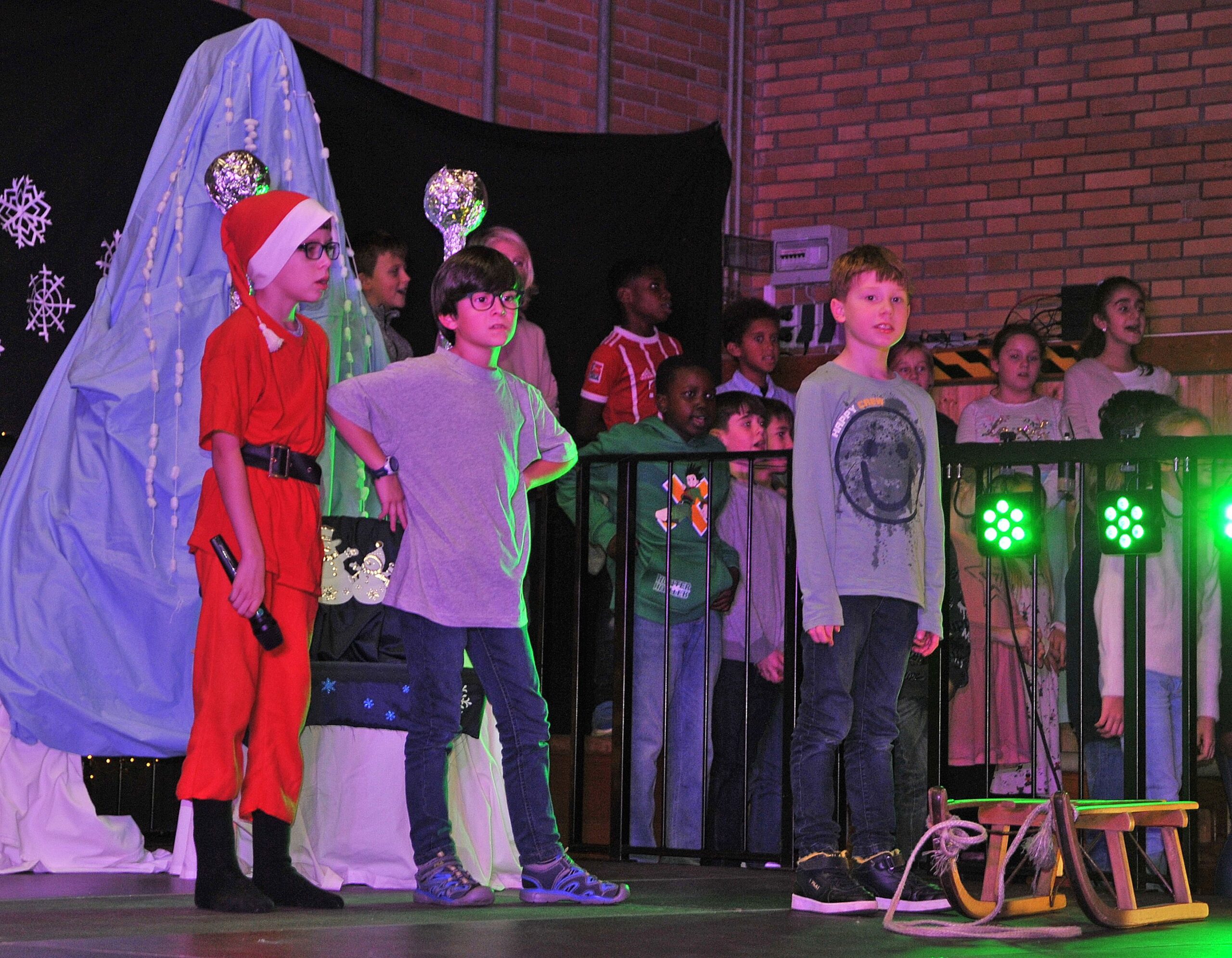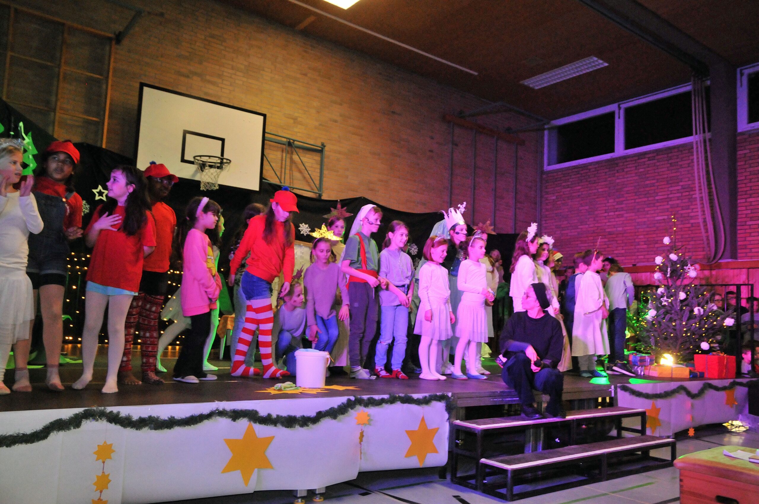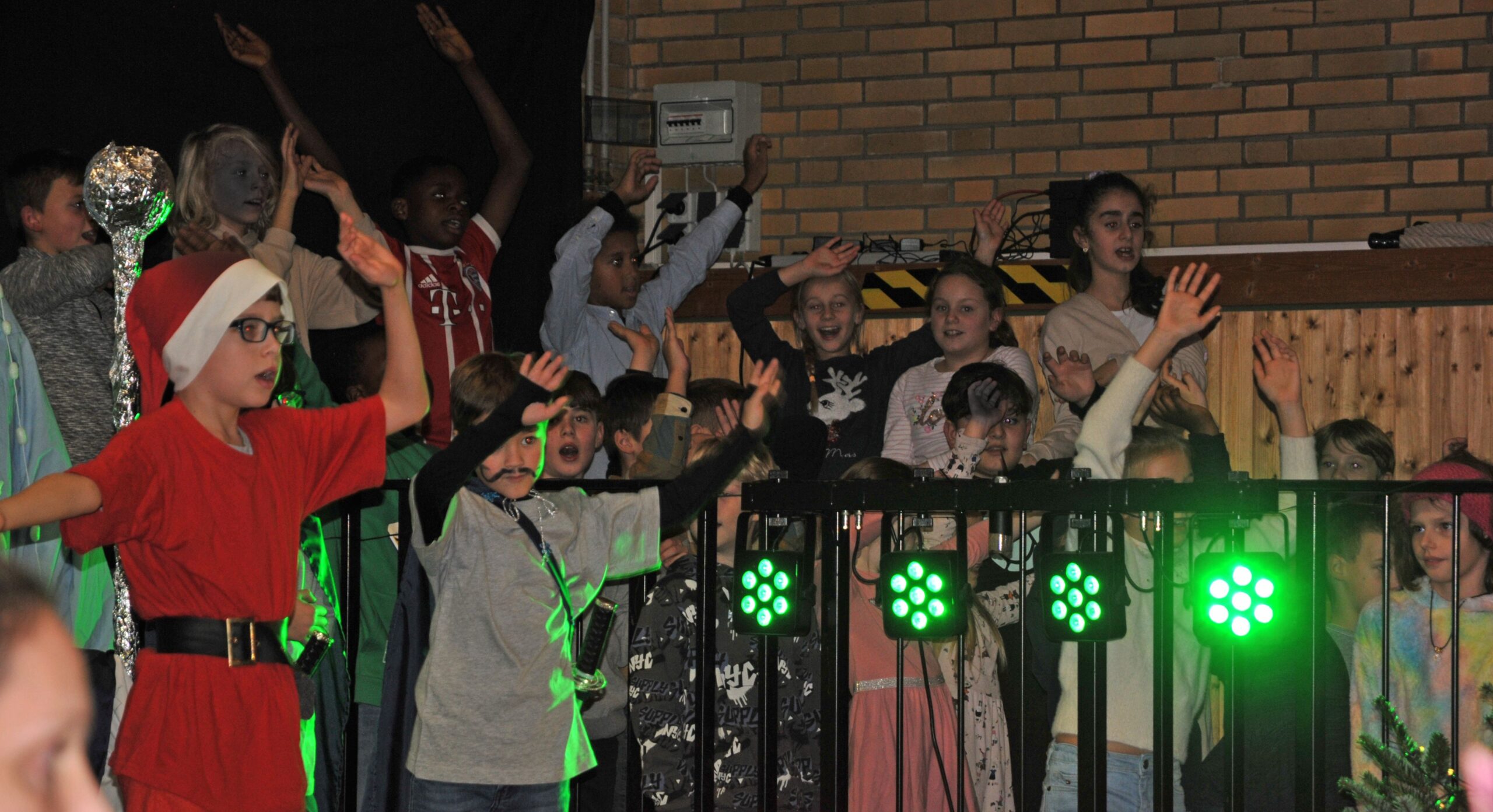 Seit Oktober wurden in einem Projektchor von allen Kindern der Schule die Lieder hierzu einstudiert. Auch dieses Mal wieder unter der musikalischen Leitung von Sonja Reinsfelder, Chorleiterin des Spessarter Gesangvereins Germania. Die Theater-AG mit Kindern der 2., 3. und 4.Klasse, unter der Leitung von Frau Laquai, spielte die Geschichte von Rudi, dem Wichtel, der einen wichtigen Weihnachtswunsch verschusselt hatte.