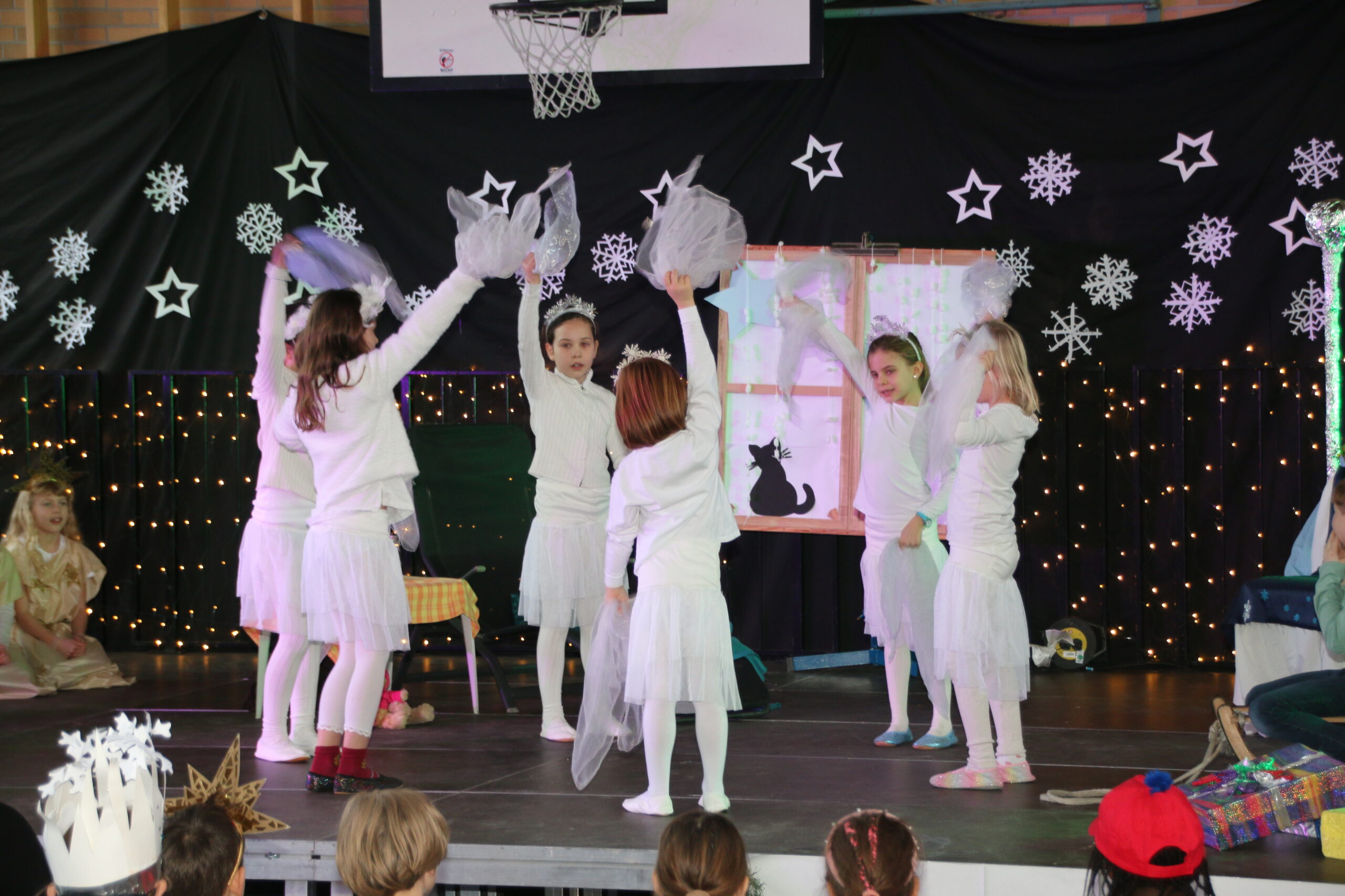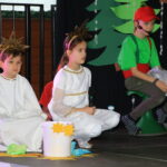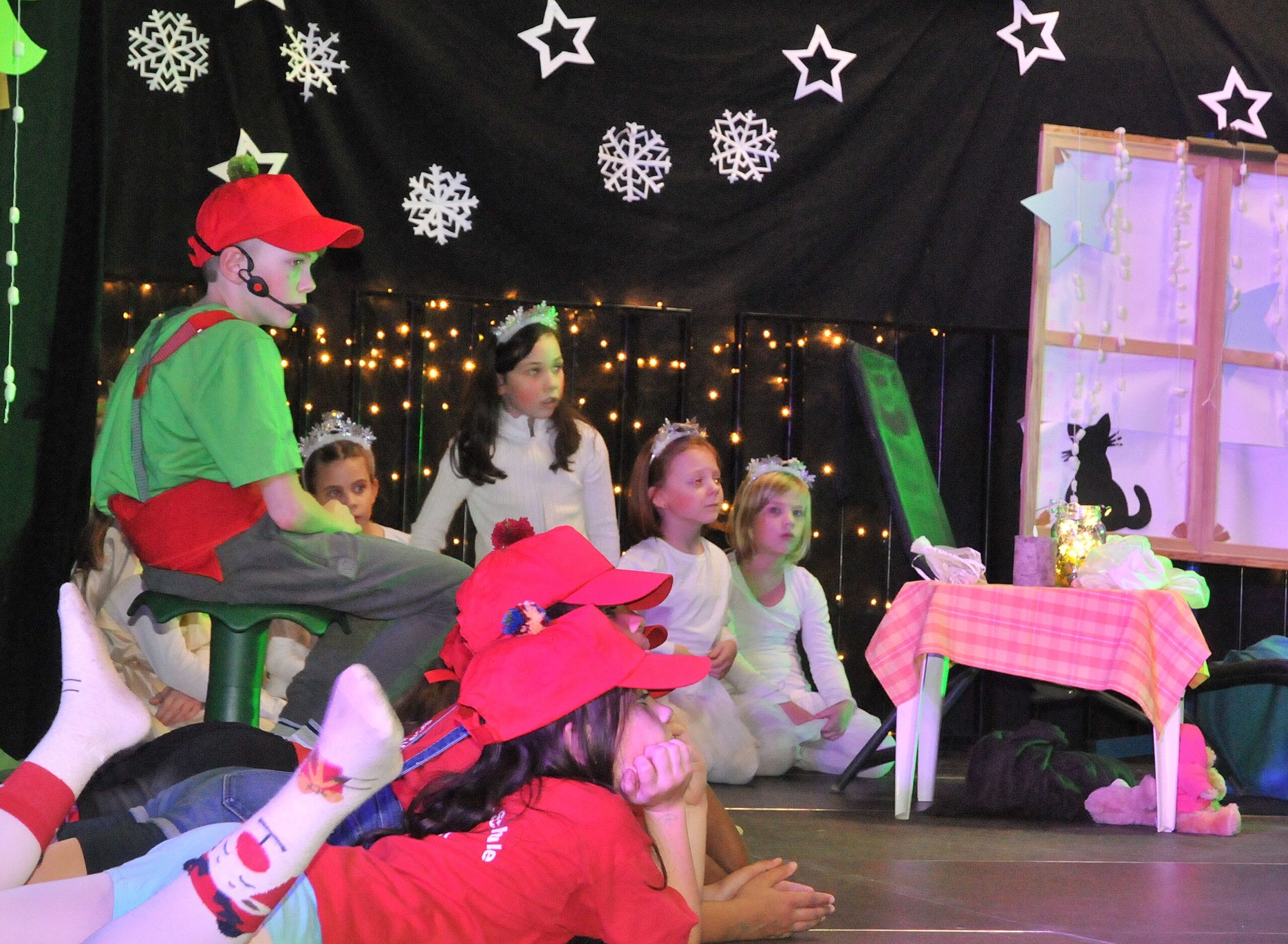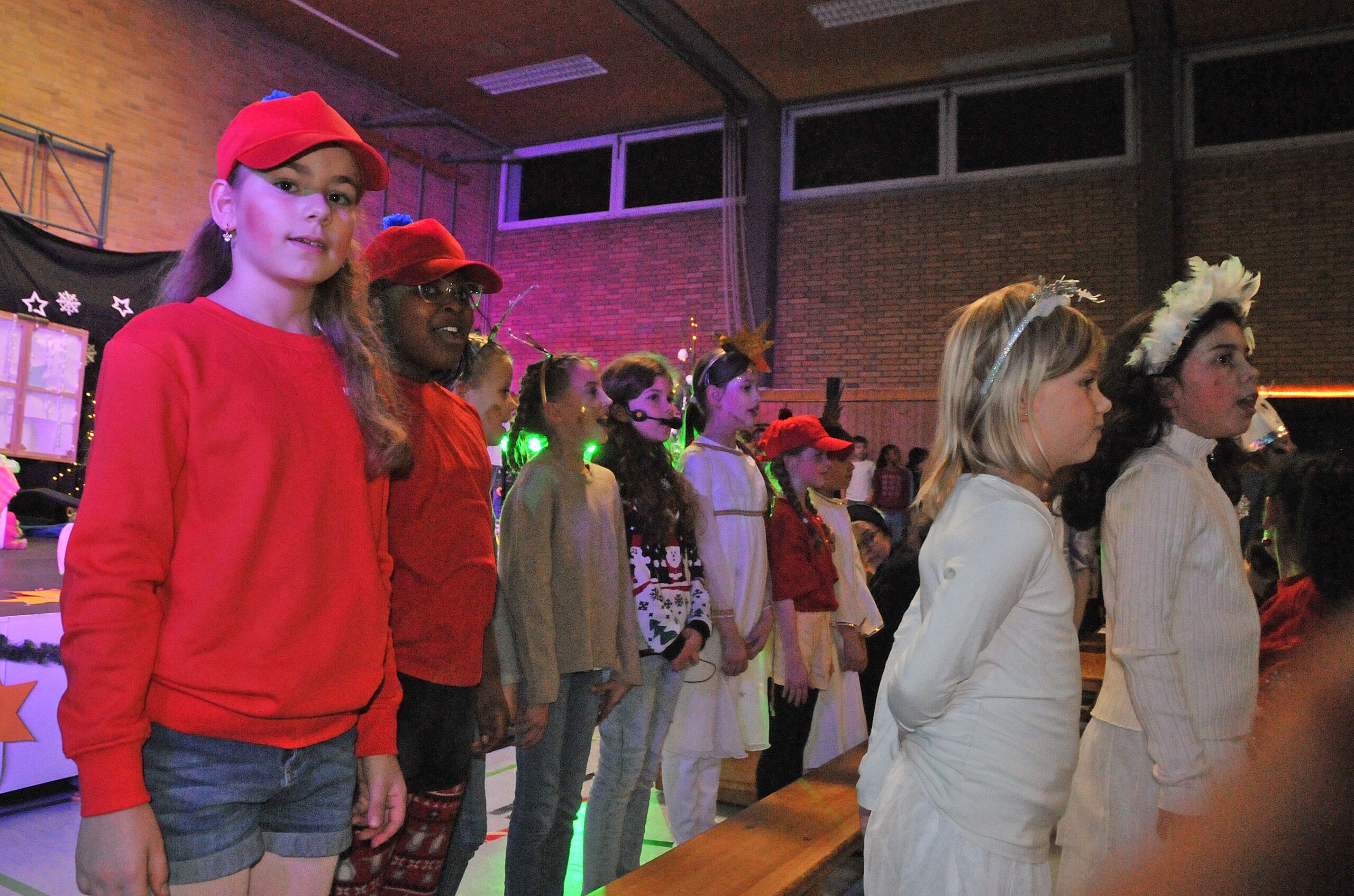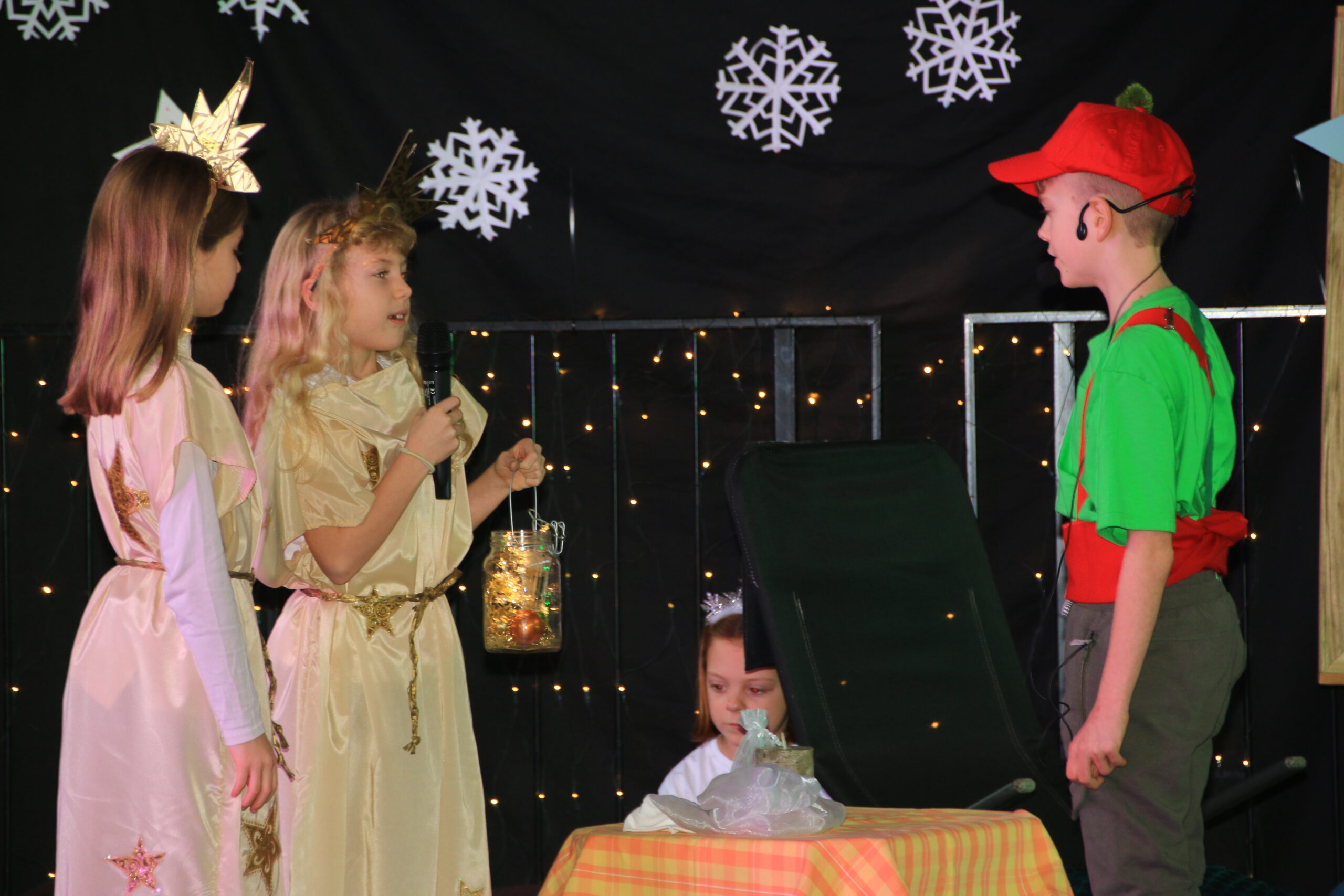 Seit Oktober wurden in einem Projektchor von allen Kindern der Schule die Lieder hierzu einstudiert. Auch dieses Mal wieder unter der musikalischen Leitung von Sonja Reinsfelder, Chorleiterin des Spessarter Gesangvereins Germania. Die Theater-AG mit Kindern der 2., 3. und 4.Klasse, unter der Leitung von Frau Laquai, spielte die Geschichte von Rudi, dem Wichtel, der einen wichtigen Weihnachtswunsch verschusselt hatte.